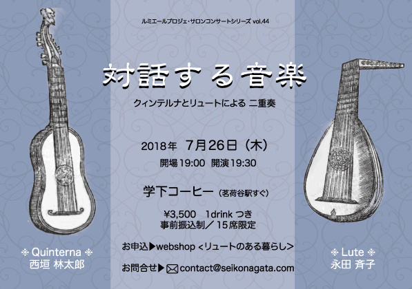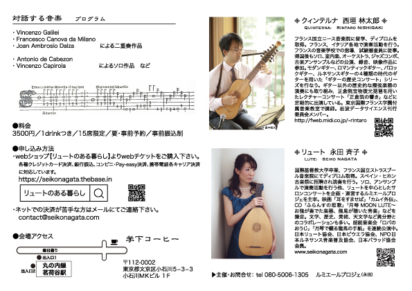 <出演>西垣林太郎(6コース・ルネサンスリュート)永田斉子(8コース・ルネサンスリュート)