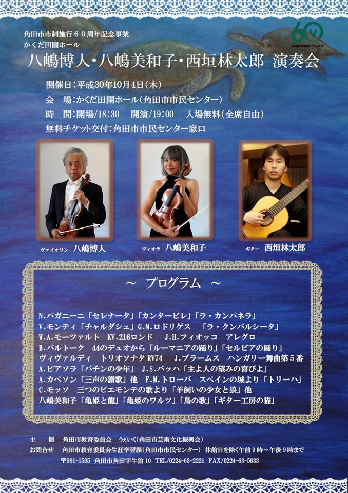 14 October 2018 : Vln, Vln, Guitar : Kangei-Kan (Tokyo)face|back