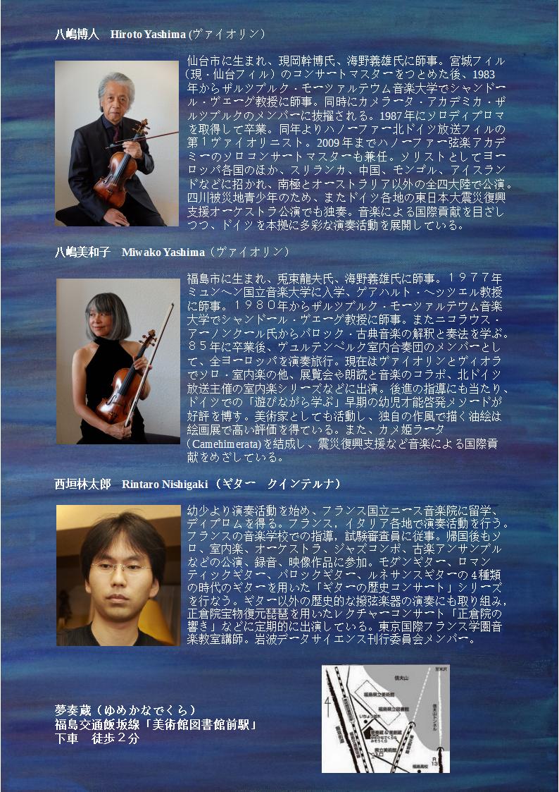 出演:アントニオ・カリーリョ(リコーダー) 西垣林太郎(ギター) 三浦幸未知マリオ(テノール) 木村槙希(メゾ・ソプラノ)
